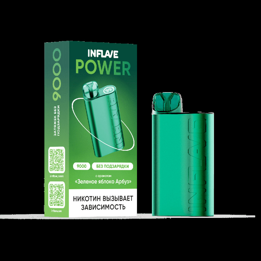 Электронная сигарета INFLAVE POWER 9000 затяжек Зеленое Яблоко Арбуз - купить в Адыгейске